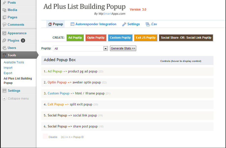 [font=Droid Sans, arial, serif]Ad Plus List Building Popup v[/font][font=Droid Sans, arial, serif]3.4[/font][font=Droid Sans, arial, serif] is a very best WordPress plugin that comes loaded with super flexible and powerful features. Some of its awesome features are supportive to any shortcodes, display popup on onclick action and it will show you analytic report on daily base. This plugin is used to display popup ads on your website for different events.[/font]