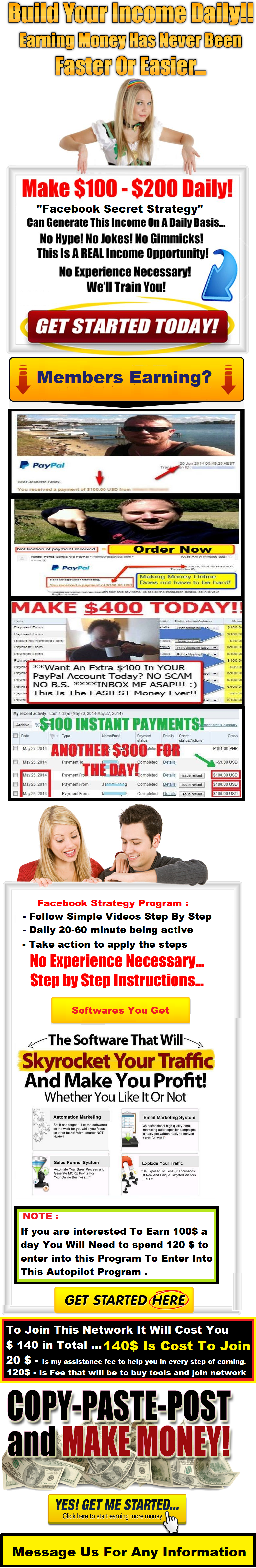 ravenzone99 2 months agoAwesome System I Must say, You guys might be making hell lot of money out of this, Extremely Unique and really Effective System..Find it quite interesting and i hope i will be able to learn these simple strategies to begin earning from this cash system...I will surely recommend it to my friends too. Its a Must Try, this Guy fivercraze is a Genius indeed. All the very best.....- Salespage:[font=Open Sans, Arial, sans-serif]http://a.seoclerks.com/linkin/137115/Traffic/236801/Earn-100-Dollar-Every-Day-From-Facebook-Secret-Strategy[/font]