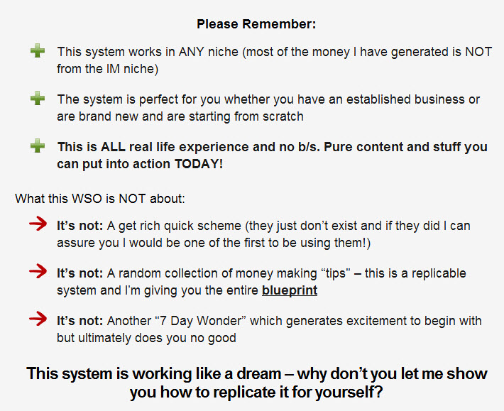 A: Yes, it's a step-by-step training on how $79,000 was generated in 4 days (not in the IM niche). Very complimentary to the main WSO.