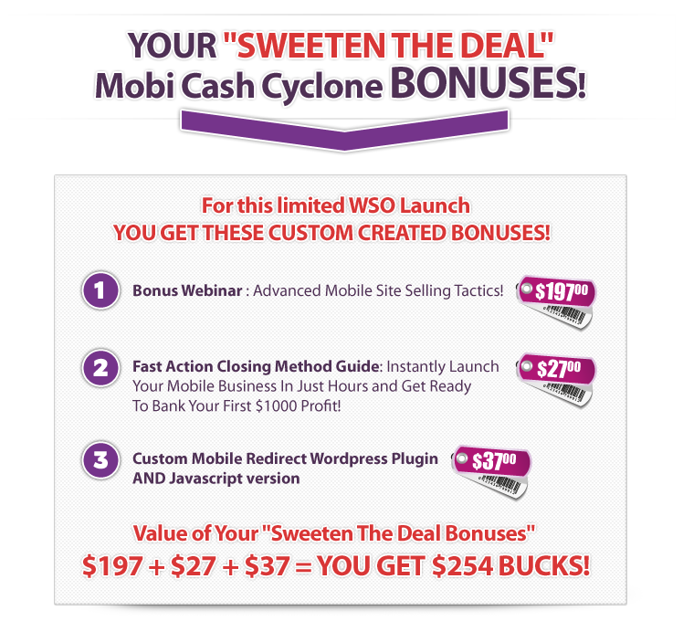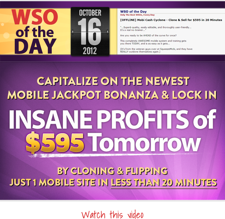P.S. The WSO Mobi Cash Cyclone is only open for 3 days…You want to bank $595 a pop selling mobile websites, then you want and need this now. We will turn this into a $47 product after. But fellow Warriors can get it for a limited time for the prelaunch price.
