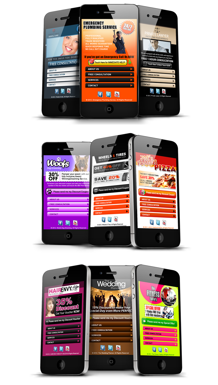 We've spent thousands of dollars of our hard-earned money, and bent over backwards endlessly designing, testing and fine-tuning these 9 drop-dead gorgeous mobile websites.