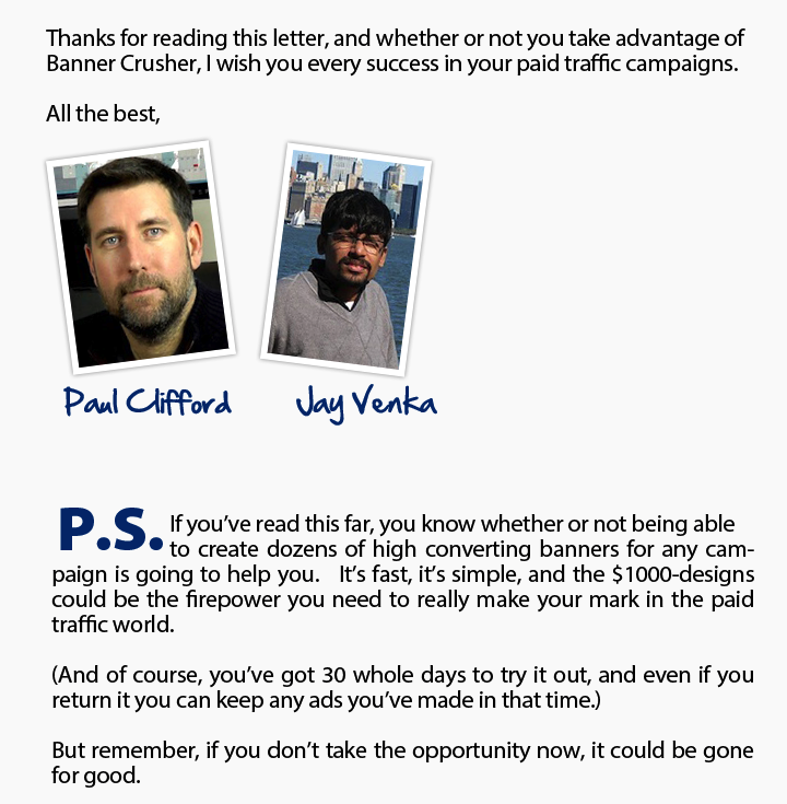 "Hey Paul, just wanted to drop you a few words of thanks about BannerCrusher.